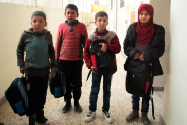 Habib og vennerne efter at have modtaget deres nye skolesæt. Foto: ADRA Syrien